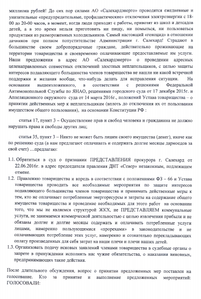 | Протокол собрания членов правления ДНТ "Север" от 07.07.2016г..